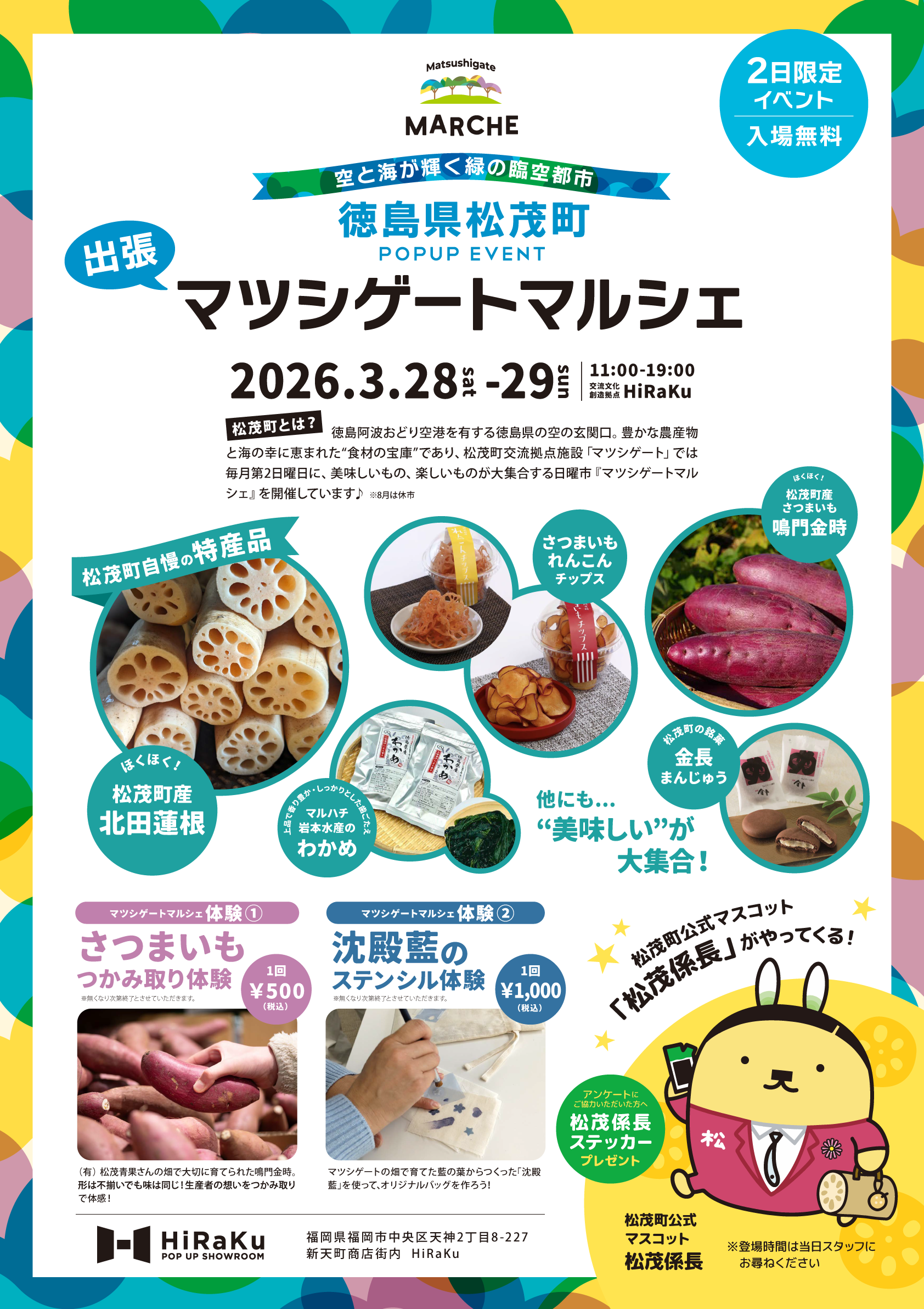 3月28日(土)~29日(日)出張!マツシゲートマルシェ in HiRaKu を開催
