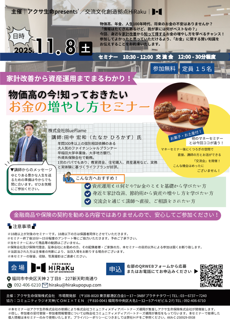 11/8(土)『物価高の今!知っておきたい お金の増やし方セミナー』を開催